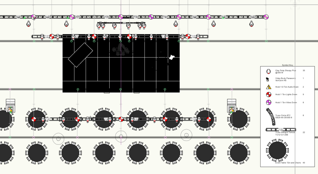 Produccion, iluminación, Rigging, Audio, Escenografía